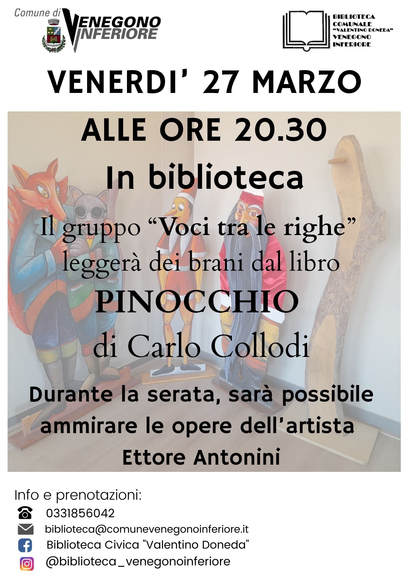 Venerdì 27 marzo alle ore 20.30 letture tratte dal libro di Pinocchio a cura del gruppo "Tra le righe".
