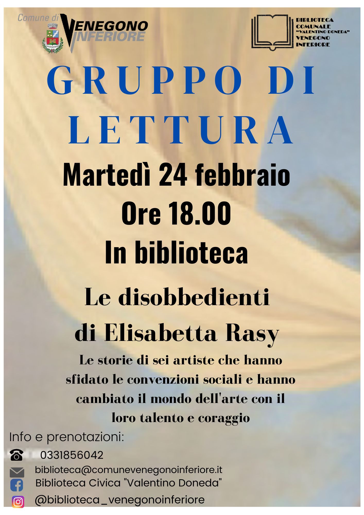 Martedì 24 febbraio alle ore 18.00 ultimo incontro del gruppo di lettura a tema arte con il libro "Le disobbedienti" di Elisabetta Rasy.