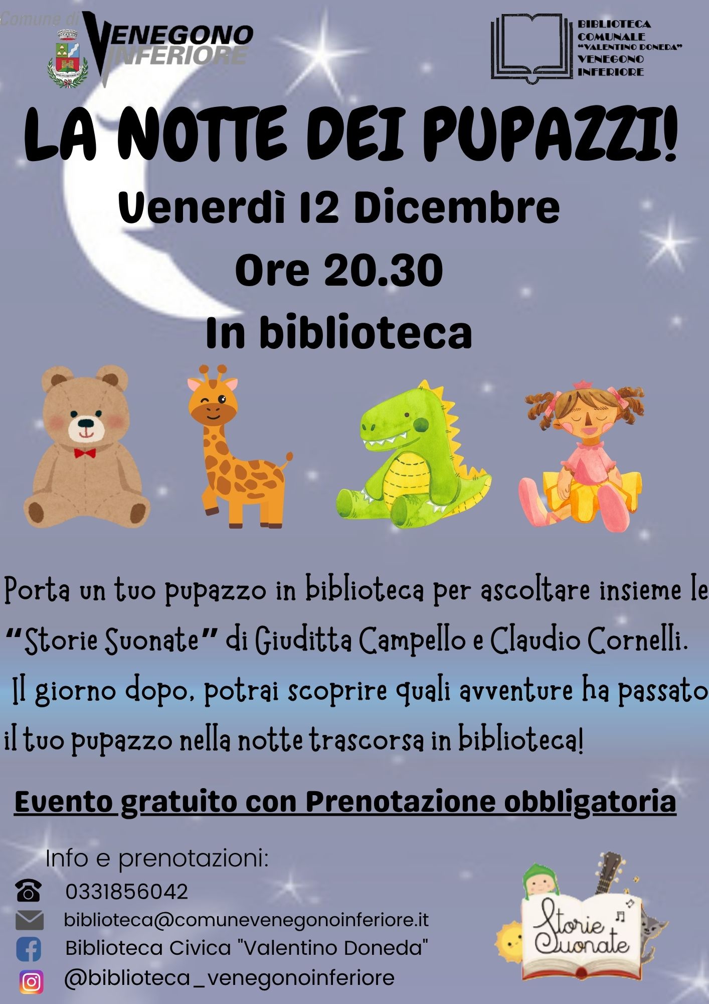 Venerdì 12 dicembre alle ore 20.30 notte dei pupazzi in biblioteca
