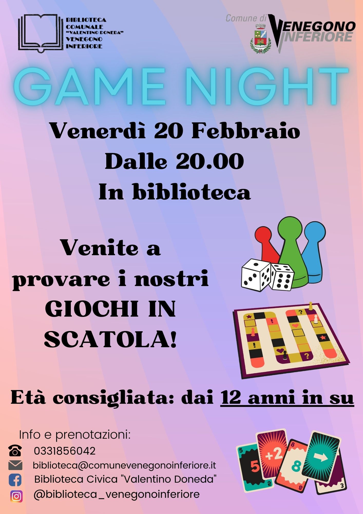 Venerdì 20 febbraio dalle ore 20.00 alle ore 22.00 serata giochi in biblioteca.