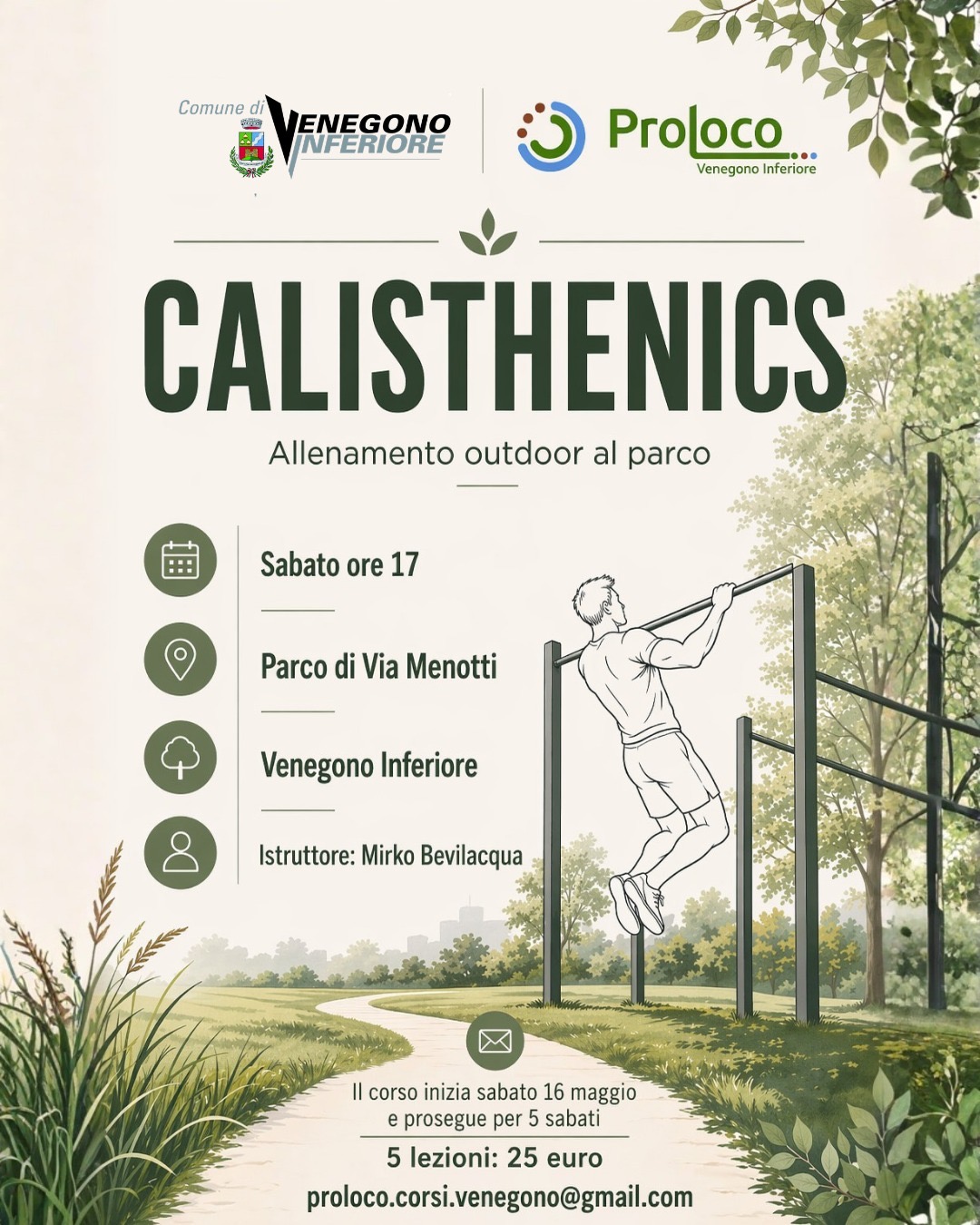 Corso di Calisthenics presso il parco di Via Menotti, organizzato da ProLoco con il patrocinio del Comune di Venegono Inferiore.