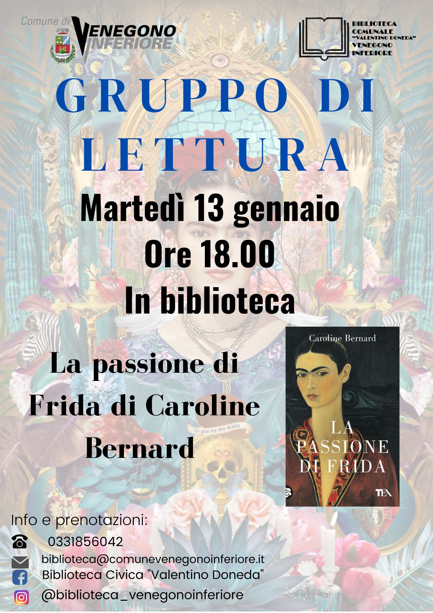 Martedì 13 gennaio alle ore 18.00 incontro del gruppo di lettura per parlare del libro "La passione di Frida" di Caroline Bernard.