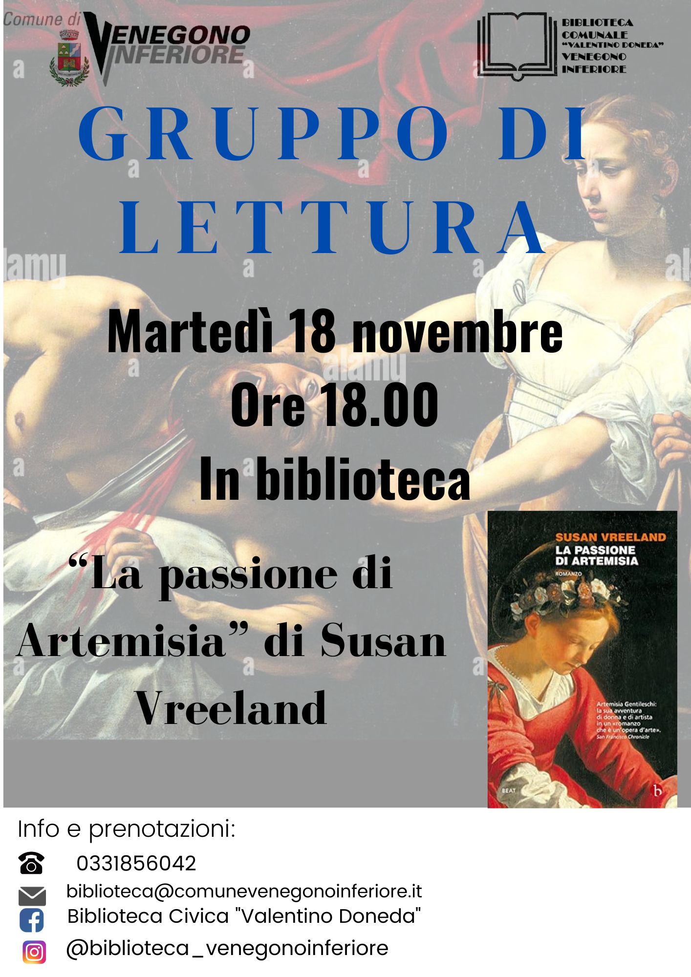 Martedì 18 novembre alle ore 18.00 incontro del gruppo di lettura con il libro "La passione di Artemisia" di Susan Vreeland.